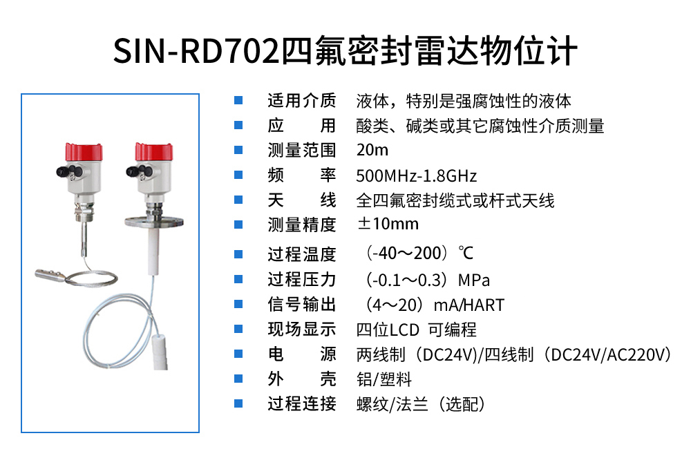 聯測_SIN-RD702四氟密封雷達液位計_適用于強腐蝕性的液體_