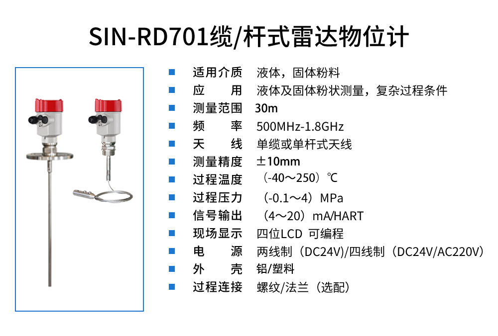 聯測_SIN-RD701纜/桿式雷達物位計_是適用于液體及固體粉狀_