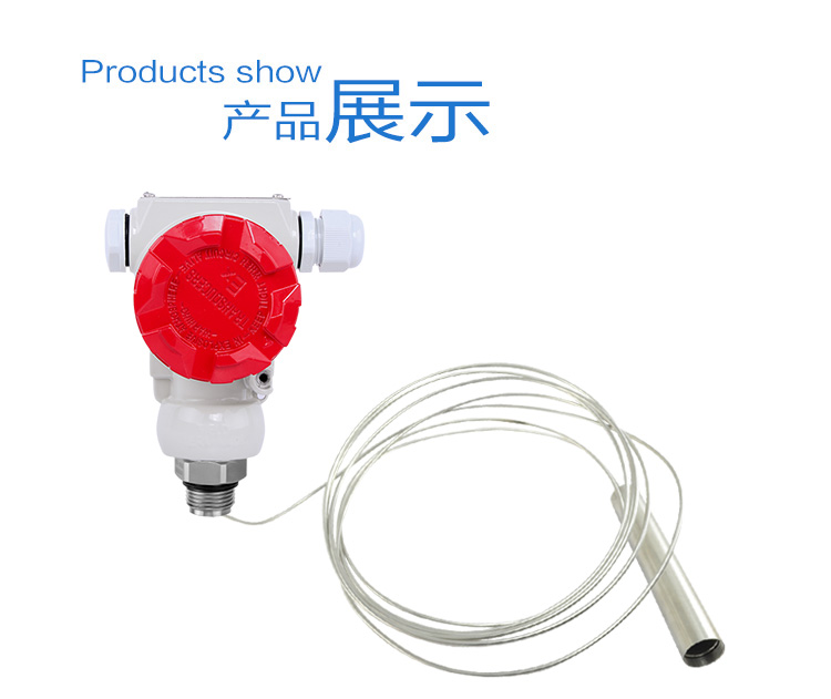 集氣桶式液位變送器(下稱變送器)用于測量較高溫度液體介質的液位,原理是被測液體介質壓縮集氣桶內的空氣,空氣壓力通過毛細管傳遞給敏感元件,敏感元件本身不與被測介質直接接觸,因此變送器可以應用在較高溫度的介質環境中,同時,內置微型信號放大處理電路,可以直接與計算機接口卡、控制儀表、智能儀表或 PLC 等連接,進行遠程傳輸。變送器廣泛應用于環保、水利、供水、工業過程控制、變頻供水等較高溫度介質的液位測量。