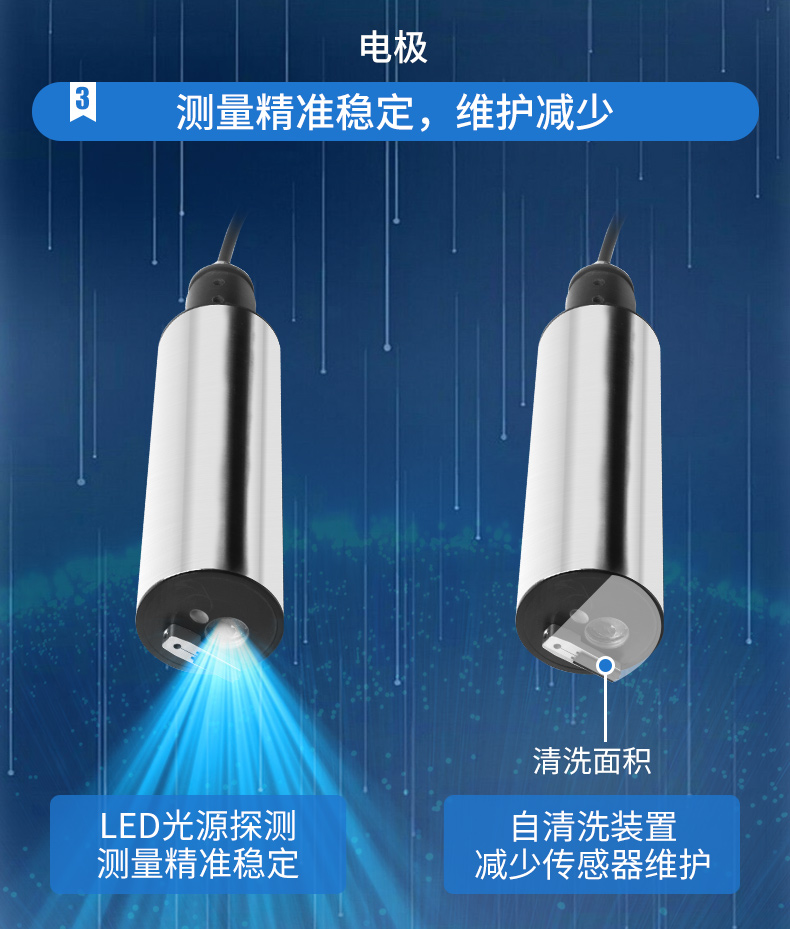 濁度/污泥濃度傳感器的原理基于組合紅外吸收散射光線法,應用ISO7027方法可以連續(xù)并精確地測定濁度或污泥濃度。